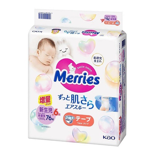Merries diapers with NB 76 stickers (newborn up to 5kg) 4bags/carton